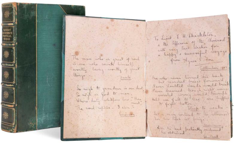 “The book in question was written by Shackleton’s beloved author, Robert Browning, which was presented to him by a Royal Geographical Society member while stationed in New Zealand in 1907—the starting point to the voyage south,” Brink said.
