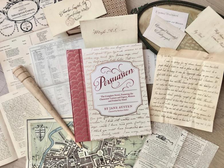 Our readers will be familiar with designer and curator Barbara Heller’s deluxe editions of Pride & Prejudice and Little Women, because we have recommended them. They set themselves apart because Heller has tucked recreations of manuscript letters and other pieces of print ephemera into pockets throughout the books. It makes for an interactive reading experience, but one that feels nostalgic too. There is so much painstaking detail that goes into the production of them, so we asked Heller to chat with us about her latest edition, Jane Austen’s Persuasion — incidentally a hot topic this year due to the latest film adaptation. Below is a lightly edited transcript of our conversation.