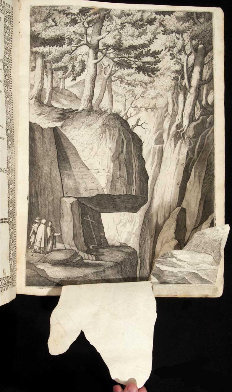 illustration 6: Fra Lino Moroni (active ca. 1612), author; after Jacopo Ligozzi (1547–1627), Descrizione del sacro monte della Vernia (Description of the sacred mountain of La Verna), Florence: publisher unknown, 1612. Flaps: Book with letterpress and etched plates, several with liftable flaps.