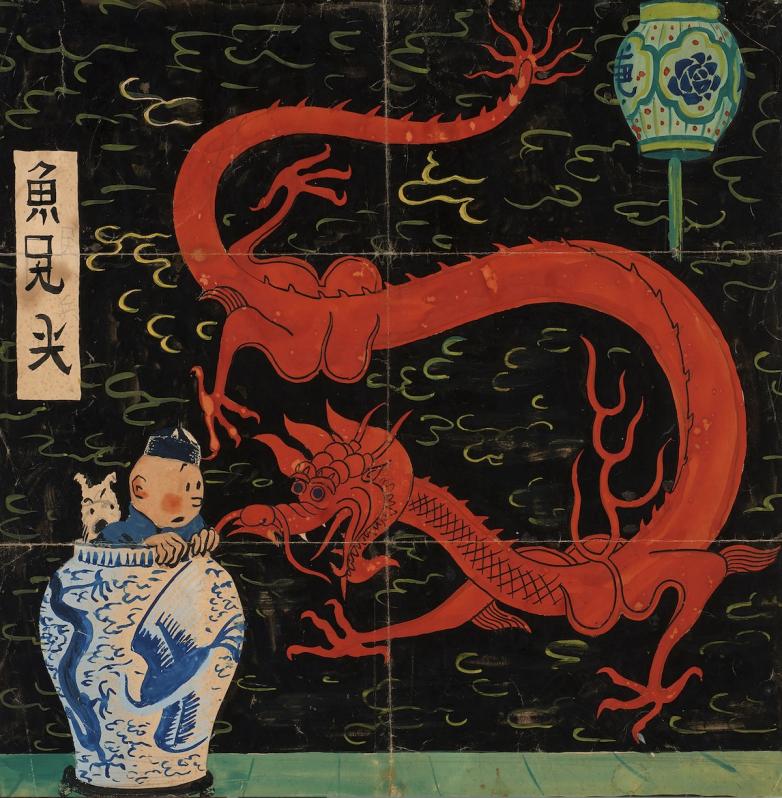 Artcurial to Auction Hergé’s Initial Cover Design for Le Lotus bleu