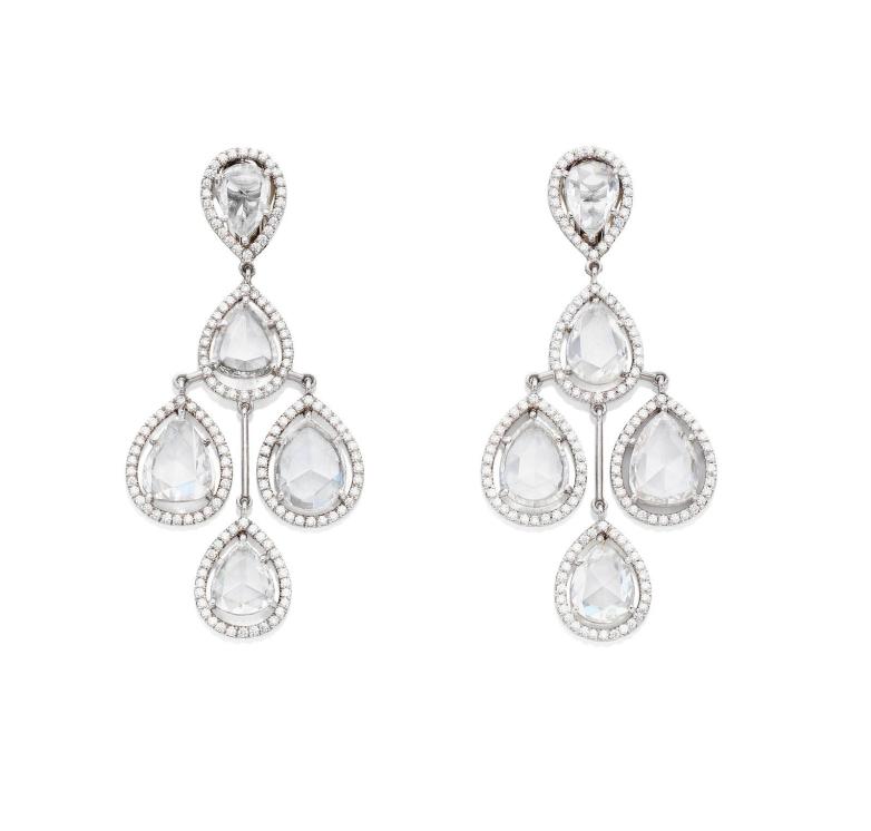 The pair of rose-cut diamond chandelier earrings by London jeweler David Morris pictured above is estimated at £6,000-8,000 ($7,800+), and there are photos of the author wearing them. What’s more, take a close look at the first American edition of A Woman of Substance, pictured left—is it me, or do they resemble the ones later owned by the author?