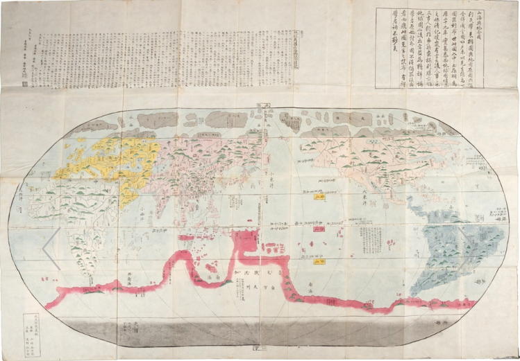 An 1834 issue of Sekisui Nagakubo's map of the world, based on Matteo Ricci's design which placed Asia at the center of the map; offered at PBA Galleries this week.