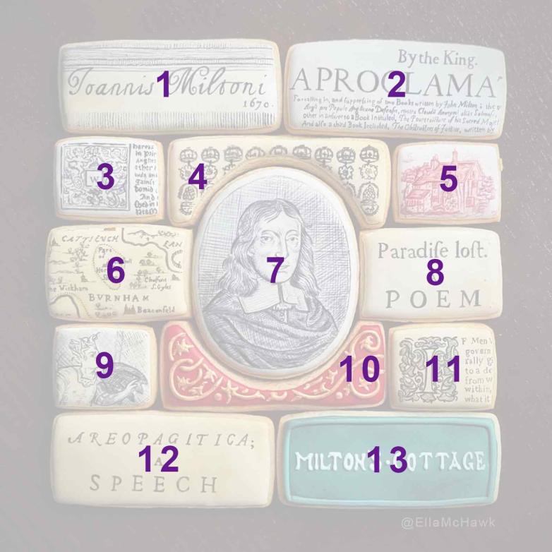 Ella, who is a Teaching Fellow in Early Modern English at the University of Birmingham, has put together a set of biscuits inspired by the place where Milton wrote Paradise Lost, now the Milton's Cottage in Chalfont St Giles which is one of the oldest writer’s house museums in the world.