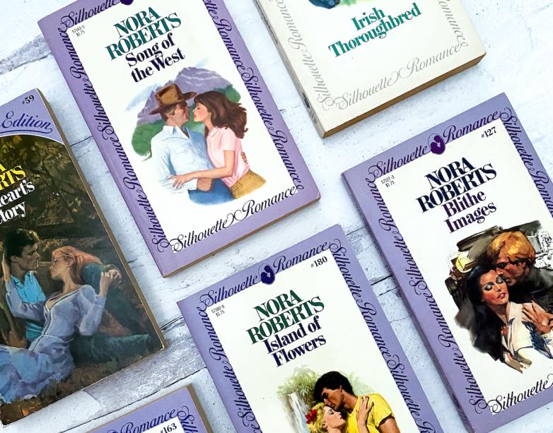 A selection of Nora Roberts romances included in Rebecca Romney’s catalogue, The Romance Novel in English: A Rare Book Survey, 1769-1999, and now in the collection of Indiana University’s Lilly Library.