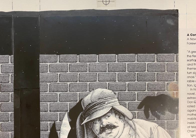 Original mechanical used for the first printing of the dust jacket of A Confederacy of Dunces, showing the ’star effect’ by illustrator Ed Lindlof.