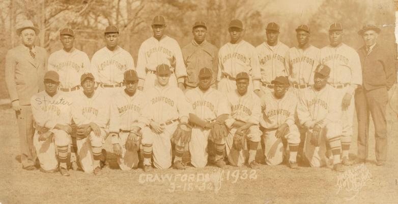 Only known surviving presentation photograph of the 1932 Negro League Pittsburgh Crawfords. Photo includes Hall of Famers Satchel Paige, Josh Gibson and Oscar Charleston. Estimate: $20,000-35,000