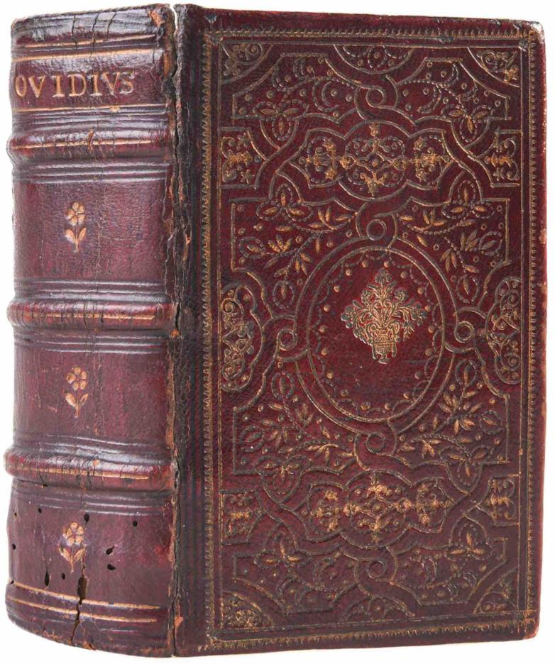 Rare Lyon pocket edition of the complete works of Ovid (no complete copies in UK or US libraries). The printers Godefroy and Marcellin Beringen were brothers of German origin who began printing at Lyon c. 1544. The binding is a very good 19th-century pastiche of the late 16th-century French fanfare style, although the largely