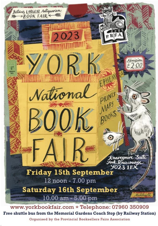 York National Book Fair, running since 1974, has become the largest rare, antiquarian, and out-of-print book fair in the UK and Europe. The 2023 fair, featuring books, prints, maps, and ephemera, takes place at York Racecourse over two days, September 15-16, with around 200 booksellers. Highlights include: