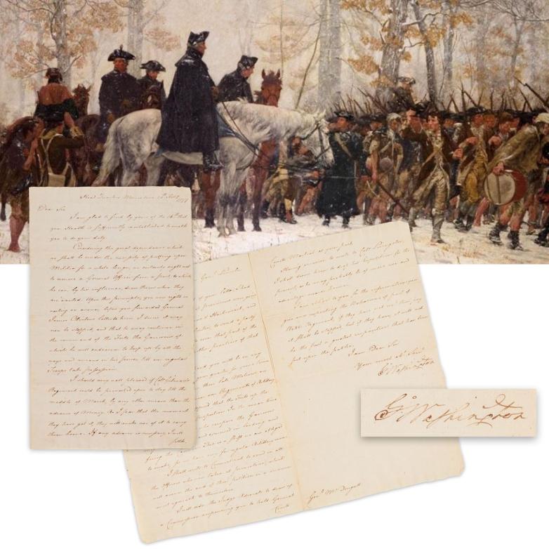 George Washington boldly signed letter written at Continental Army winter headquarters in Morristown, N.J., in 1777, commenting on British Army troop movements (est. $30,000-$40,000).