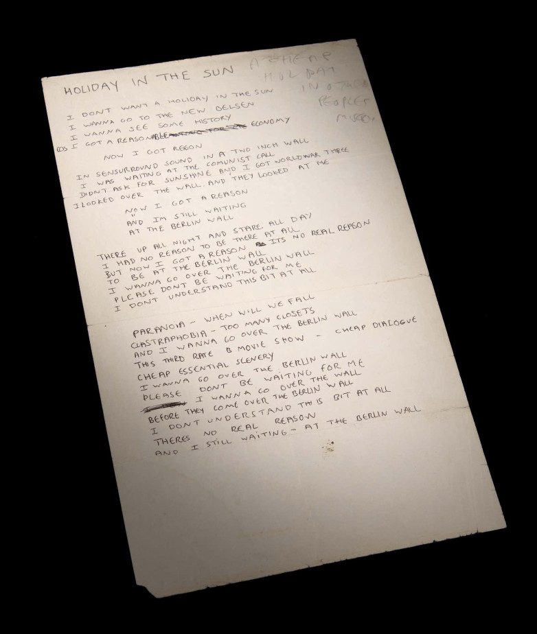 The handwritten lyrics for Holidays in the Sun and an early draft of Submission by Rotten - born John Lydon -  are written in black and green ballpoint on both sides.