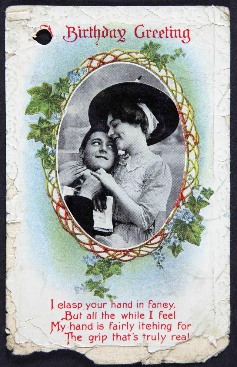 Using 500 years of love letters, the exhibition also looks at lovers divided by geography including love letters sent to William Crawford, a soldier who died in the First World War from his sweetheart ‘Hetty’ (including a birthday card, pictured above).