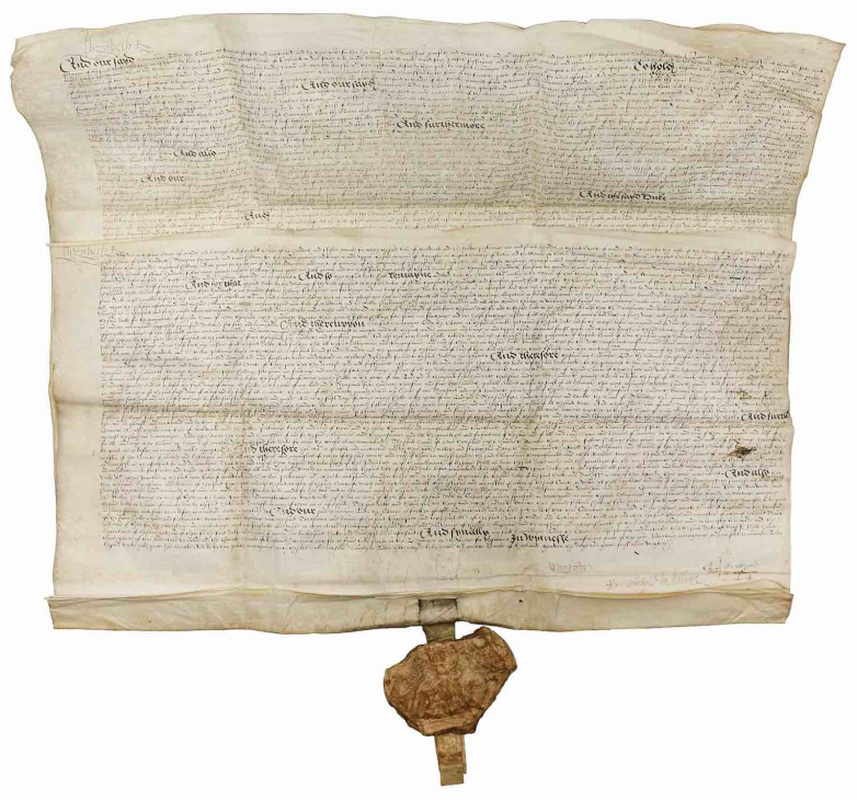 The auction also features a magnificent, triple-signed indenture by Queen Elizabeth I. This vellum manuscript, dated August 24, 1562, details the exchange of lands between the crown and Thomas Howard, 4th Duke of Norfolk. The document retains a substantial fragment of its Great Seal in white wax and is archivally mounted and framed (estimate: $50,000)