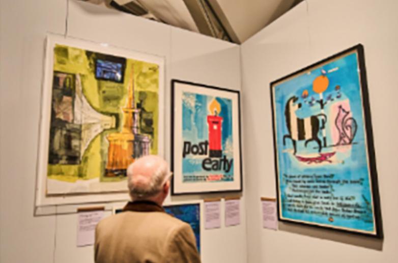 A visitor viewing the new How to Make a Poster exhibition