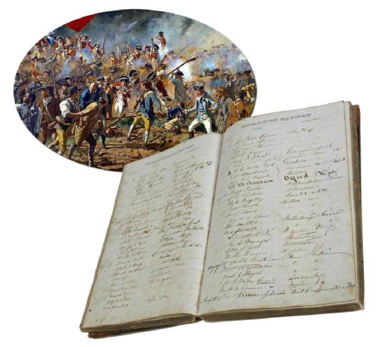 Remarkable Bunker Hill guestbook, signed during the Civil War by about 12,000 visitors to the famous Revolutionary War battle site and commemorative monument (est. $9,000-$10,000).