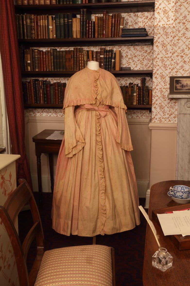 Charlotte Brontë's pink wrapping gown with matching cape is on view at the Bronte Parsonage Museum.