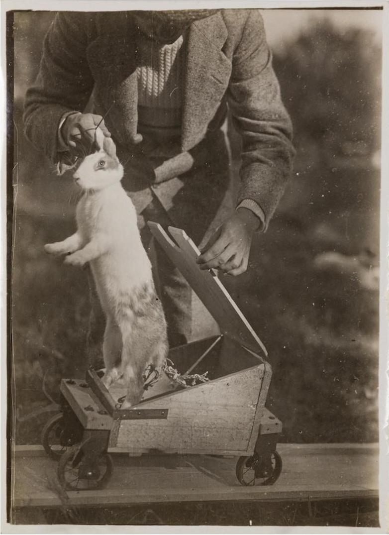 Lartigue wrote in his diary of the experiment: "Thanks to the inventive genius of my brother, our hens and rabbits were lucky enough to find themselves guinea pigs, and thus able to experience many strong acrobatic emotions which were denied to us! Our parents need not have worried, there were no accidents."