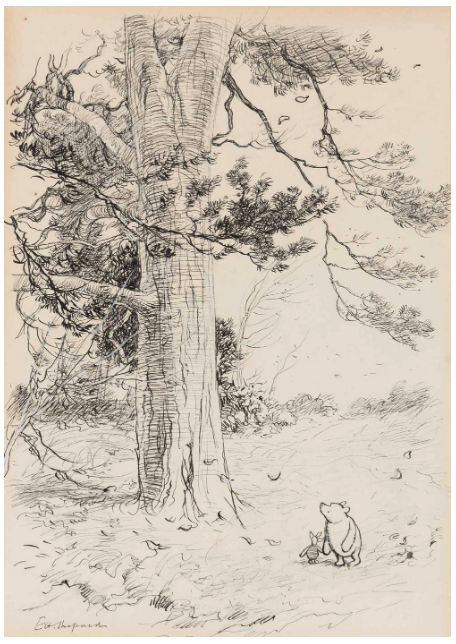 E.H. Shepard's drawing "Suppose a tree fell down when we were underneath it," for The House at Pooh Corner, offered at Doyle New York this week.