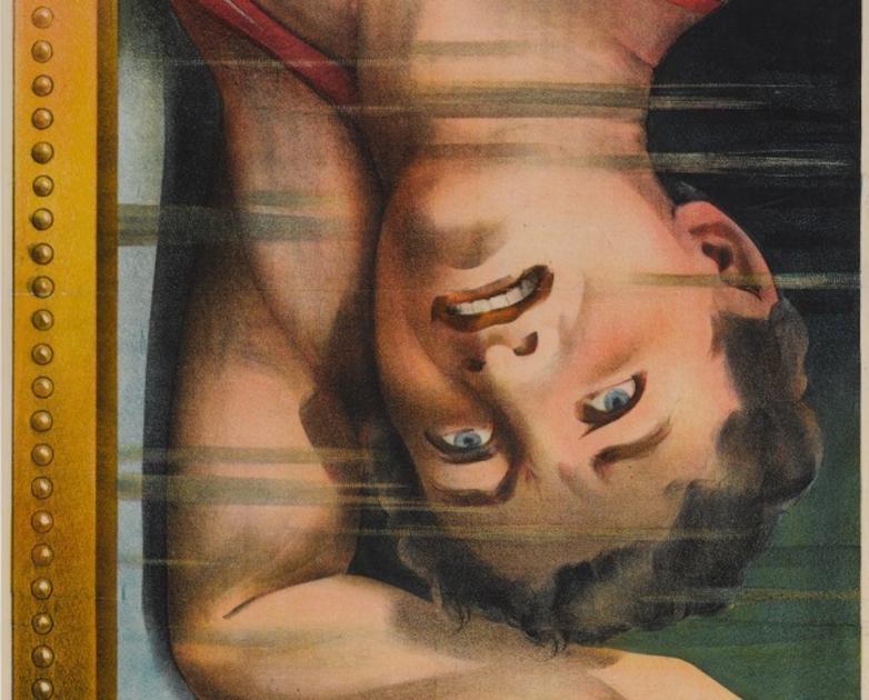 "Houdini Upside Down in the Water Torture Cell," lithographed poster offered at Sotheby's New York this week in the Ricky Jay Collection.