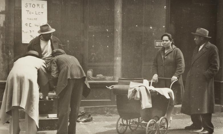 Helen Levitt's photograph "Shoeshine," offered at Swann Galleries this week.