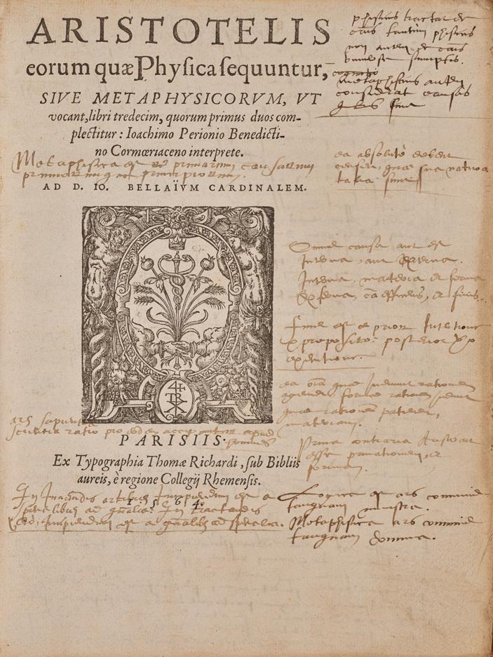 Aristotle’s Eorum quae Physica sequuntur sive Metaphysicorum, ut vocant, in libri tredecim. Paris: Thomas Richardus, 1564.