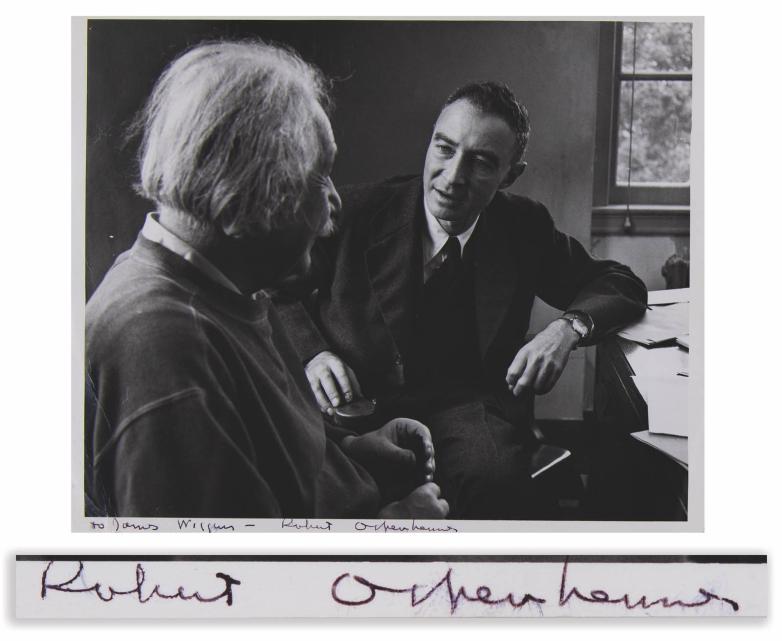 Highlights include a rare Nikola Tesla signed greeting card and a one-of-a-kind Robert Oppenheimer signed photograph taken in 1947 by Alfred Eisenstaedt for Life Magazine which captures a meeting with Albert Einstein.