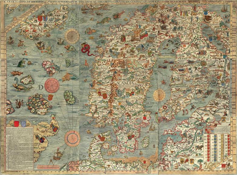 Swedish cartographer Olaus Magnus created an enchanting chart full of sea monsters and other mythical creatures