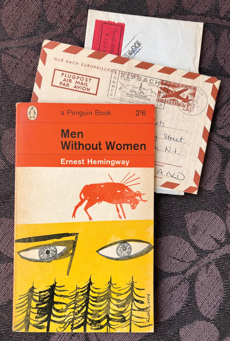 Among other discoveries was a book with a card in it addressed to “Ben” that had previously belonged to actor Ben Whishaw. “But I’m more intrigued by the airmail love letter I found in the Penguin copy of Ernest Hemingway’s Men Without Women I bought from Oxfam in Sheffield in November last year. [In the letter, its writer named Al] had gone skiing in Austria, leaving her man, John, without his woman. She loved him and missed him, she said, but was not short of male attention on and off the slopes.”