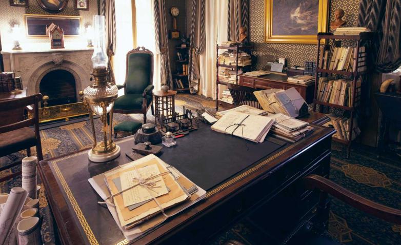 The typical fate of a television set and its contents post-production is not pretty; cast and crew may select a memento or two, but the scrap heap is the usual destination. Not so for many of the set pieces and paper props from the beloved Apple TV+ series Dickinson (2019–2021). The Houghton Library at Harvard University in Cambridge, Massachusetts, and the Emily Dickinson Museum in Amherst, Massachusetts, have acquired many of the pieces that helped transport viewers back to the 1800s. The bulk of the paper materials—scripts, reproductions of poems, letters, and newspapers—went to Cambridge, while costumes and other props will be pressed into service in Amherst after the museum’s major renovation wraps up this summer.