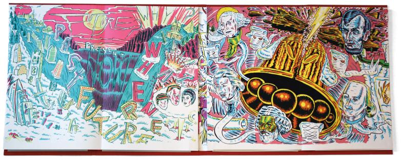 Buddy’s Story (2014), a unique, large-scale accordion book by the San Francisco graffiti artist CUBA, containing a poem by Marshall Weber.