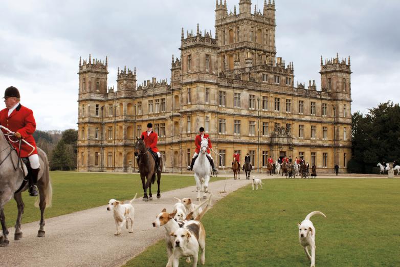 A foxhunting scene from Downton Abbey’s final season. For six years, the series has been filmed at Highclere Castle, a Gothic Revival structure designed by Sir Charles Barry. The show’s final season premieres on January 3, 2016 on MASTERPIECE on PBS.