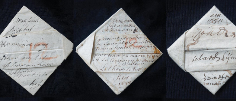 Three square diamond formats from the Brienne Collection of undelivered letters found in a postmaster’s trunk dating between 1689 and 1706.