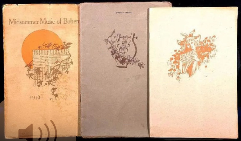 The items, from a California collector, range from 1909 to the 2000s and reflect a vast range of events held at the Bohemian Club in San Francisco or the Bohemian Grove in Monte Rio, California, where the Midsummer Encampment, an annual 18-day members’ retreat, is held each July.