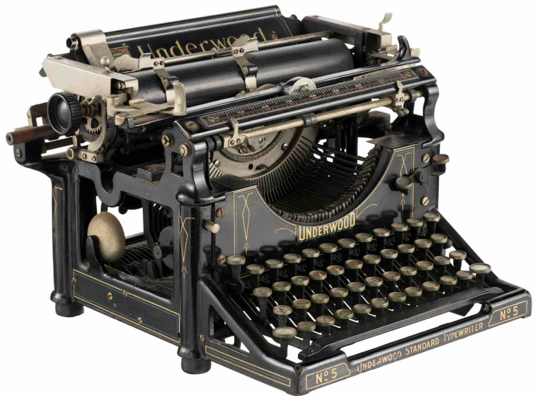 He used his Underwood No. 5 typewriter - metal accented with a black frame featuring gold lettering and striping - to type the scenario for the film which was his directorial debut, and which was written in long hand by him and Oscar Apfel on the train from New York to Los Angeles. It originally belonged to DeMille's typist-bookkeeper Stella Stray, and passed from her to DeMille in December 1913. The Squaw Man was the first feature film made in Hollywood