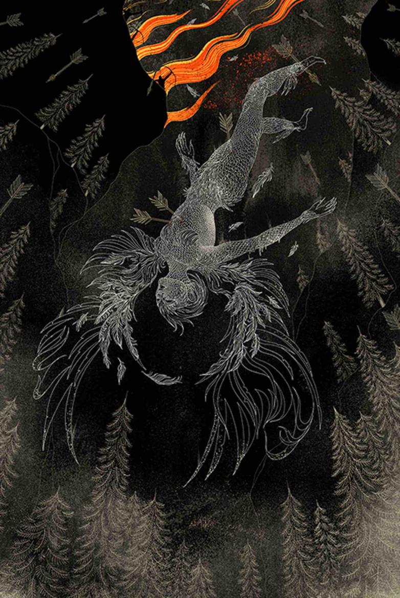 Winner Cristina Bencina, an artist and illustrator based in Colorado, receives a £2,000 cash prize, £500 worth of Folio Society books and a portfolio review with the Folio Society Art Directors. Her work was inspired by Ursula K. Le Guin’s description of a ritual persecuting the select few born with the ability to fly in a society of feathered people, who are thrown from a cliff and attacked with arrows: “Whether she flies or falls, all the men of the tribe, screaming with excitement, shoot at her with bow and arrow.” Intricately detailed and balanced in composition, Bencina’s illustration was selected for its imaginative depiction of the persecuted Flier.