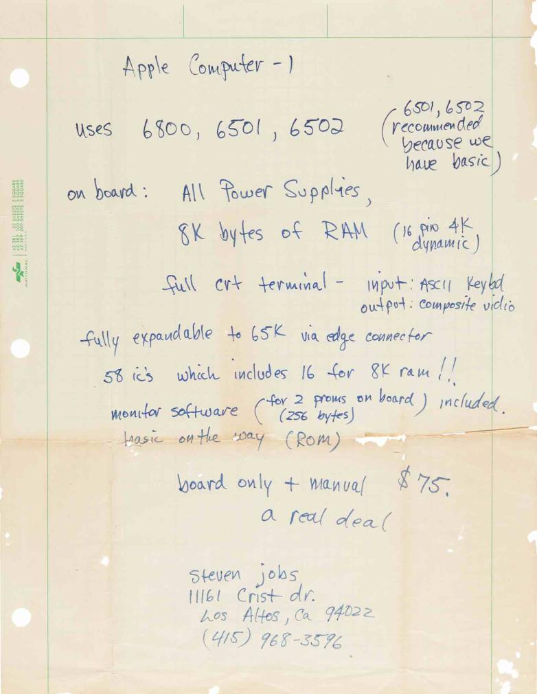 Perhaps most captivating is the price point Jobs cites in the draft: a modest $75 for the "board only + manual" which he deems a "real deal."