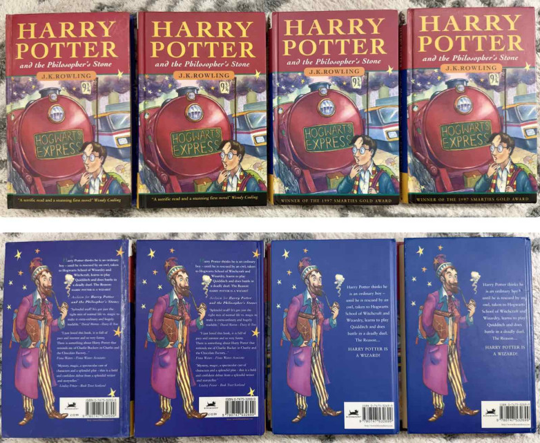 Sold by First and Fine for $105,700, the offering contained four hardcover first edition copies of the book, each representing a different impression of the first UK edition and with its own idiosyncrasies and errors. Alexander Wochnik from First and Fine commented: "We have sold several UK first edition copies of Harry Potter and the Philosopher's Stone over the years, but this was the first time we found a new home for the first four impressions of the title in one collection. The sale proves that Potter-mania continues strong with no signs of slowing down. Collectors will find more Harry Potter titles in our stock."