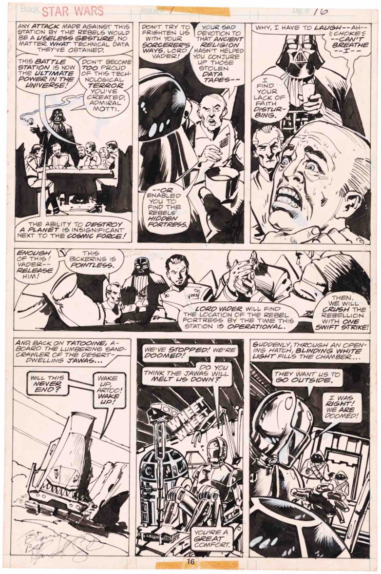 Howard Chaykin's original pen-and-ink page art (Page 16) from Star Wars #1 comic book