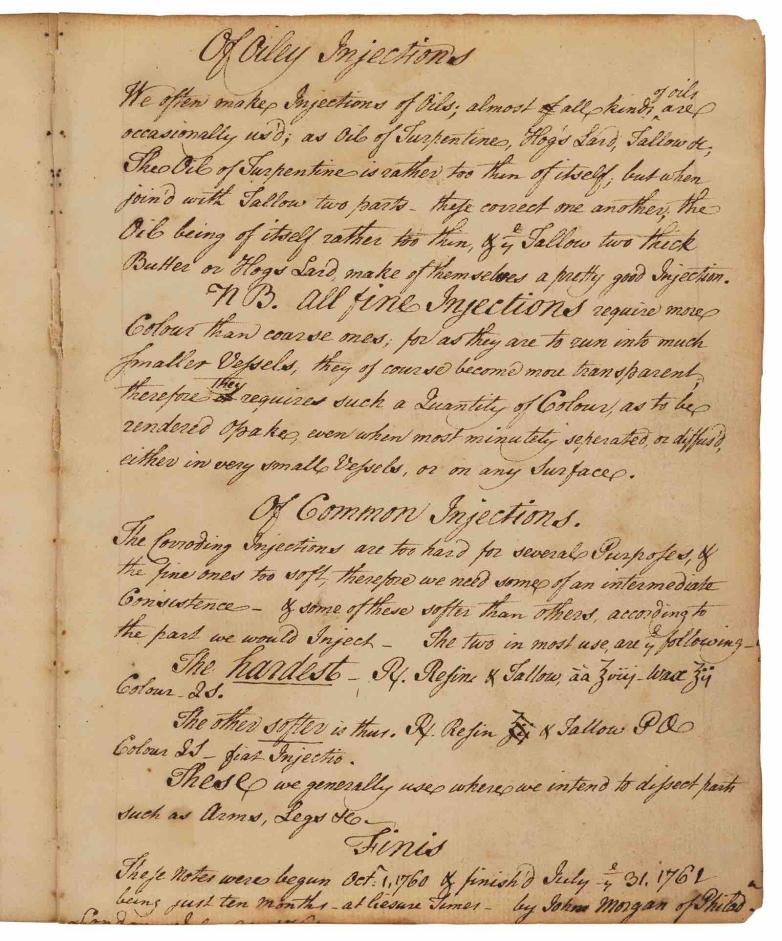 This previously unknown manuscript is an exceptional item in the history of modern medicine, comprising a series of lectures that represent the inkling of what would soon become the curriculum of America’s first medical college. Few primary materials from Morgan’s life exist, making this an exceptionally rare piece of American history. At the start of the American Revolution, Morgan moved his library and manuscripts from Philadelphia to Connecticut, in order to avoid destruction. However, when the British came through Bordentown, they burned his house, destroying most of his papers and books. Consequently, the discovery of this previously unknown manuscript represents a major opportunity for scholarship in the history of medicine.